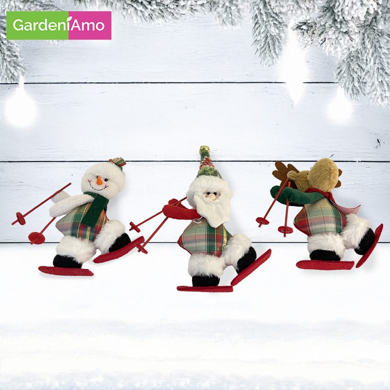 DecoNatale| Decorazione natalizia a tema sciatori alta 26 cm, realizzata in tre simpatici soggetti assortiti. Ideale per arricchire l’atmosfera invernale con un tocco giocoso e caratteristico. Perfetta per decorare mensole, ambienti interni, vetrine o creare scenografie natalizie con stile. |