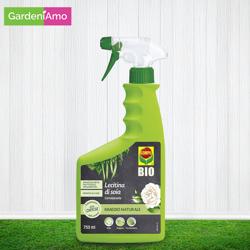 AnticrittogamiciFitofarmaciGiardinaggioCOMPO BIO Lecitina di soia è un prodotto 100% naturale ideale per potenziare le difese delle piante nei confronti di funghi come oidio, ticchiolatura, ruggine, bolla del pesco e peronospora. I fosfolipidi presenti nella lecitina sono in grado di interferire con la germinazione dei funghi che di conseguenza non sono più in grado di penetrare la parete cellulare.