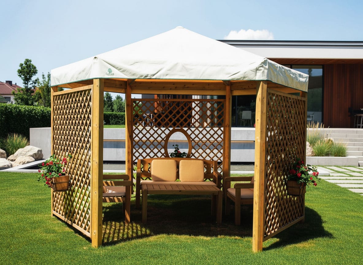 GazebiStrutture da esternoIl Gazebo Esagonale Classic è una struttura raffinata e resistente, ideale per valorizzare giardini, parchi e spazi outdoor con uno stile tradizionale e armonioso. La forma esagonale dona un impatto estetico distintivo, perfetto per creare un’area relax accogliente e scenografica.