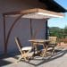 La copertura è in tessuto HDPE da 250 gr/m², stabilizzato ai raggi UV e ombreggiante. La tenda scorrevole, dotata di sistema manuale con carrucola e ferramenta inox, permette di regolare facilmente la quantità di ombra in base alle esigenze.