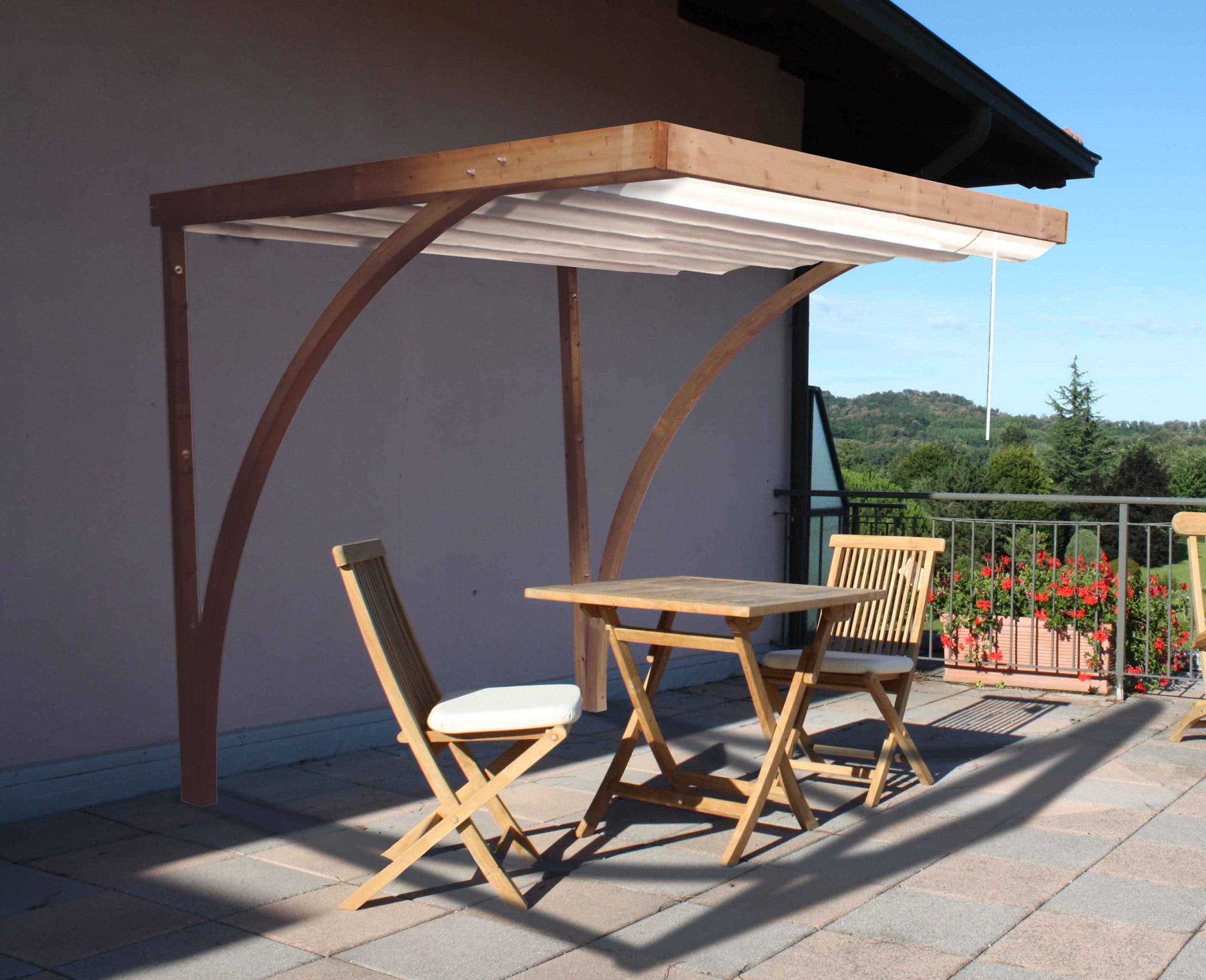 PergoleLa Pergola Volo è una struttura addossata elegante e funzionale, pensata per valorizzare terrazze, balconi e spazi esterni con un design moderno e dinamico. Grazie alla particolare forma curva degli archi lamellari, offre un’estetica leggera e contemporanea, garantendo al tempo stesso solidità e stabilità.